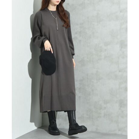 女性らしいショルダーラインで、ボディのラインをカバーしてくれるストンとしたシルエットのニットワンピース。さりげなくセンターのアウトリンキングラインと袖をリブ編みにし縦のラインを強調しすっきり見えに◎シンプルなデザインの中にも大人な雰囲気が漂うおススメなワンピースです。またブーツにも合わせやすい着丈も人気のポイントです。大き目なネックレスやチェックのストールをプラスして華やかにするのも◎