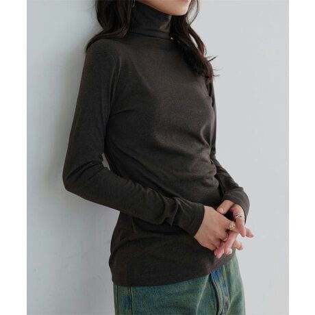 シアートップスとしてもインナーとしても万能に着回せ首元までしっかり温めてくれるハイネックロンTです◎