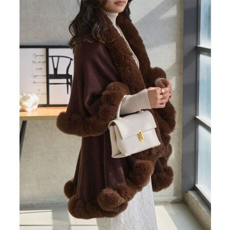 [型番:K1434]優雅な佇まいで冬の装いを彩るケープコート。リッチな質感のボリュームファーがエレガントさを引き立てシーズンムードあふれる一枚。身体を包み込むようにフィットし、着るだけで華やかに着映えるファーケープです◎【素材・サイズ感】滑らかな質感が心地よいフェイクファー素材。さっと羽織りやすい軽い着心地でライトアウターとしても活躍。歩くたび揺れ動くファーが存在感をもたらしメリハリのあるスタイルに仕立ててくれるニットコートです。#コウベレタス