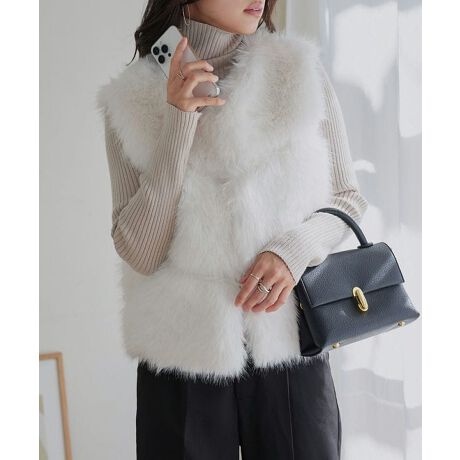 柔らかくふわふわで肌触り抜群のエコファーに、見返し部分はエコレザーを使用した贅沢で高見えする1着。