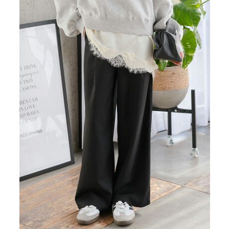 ウエスト総ゴム&ストリング仕様で、着用感はラクチンなのにキレイ見えが叶うイージーパンツ。
