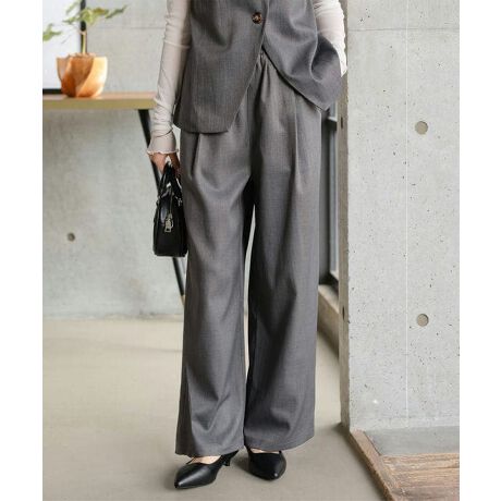 ウエスト総ゴム&ストリング仕様で、着用感はラクチンなのにキレイ見えが叶うイージーパンツ。