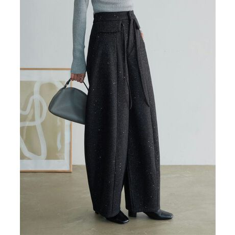 [ 裏起毛 ] フェイクウールラメカーブパンツ [M4376]