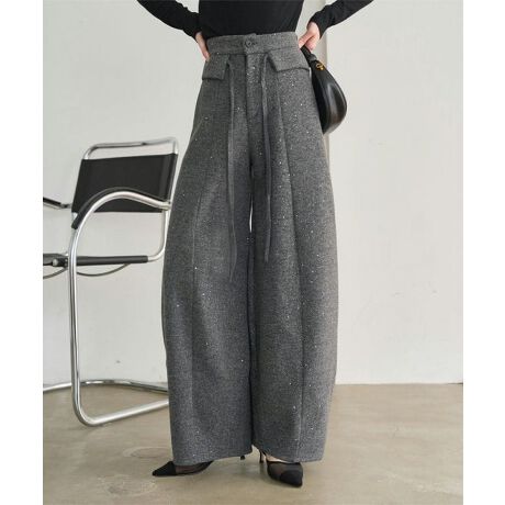 [ 裏起毛 ] フェイクウールラメカーブパンツ [M4376]