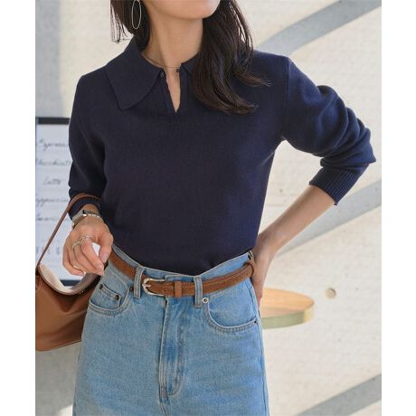 ポロ襟のボタンは開けたり閉じたり2wayで着回せ、雰囲気の違いも楽しめる一着です。