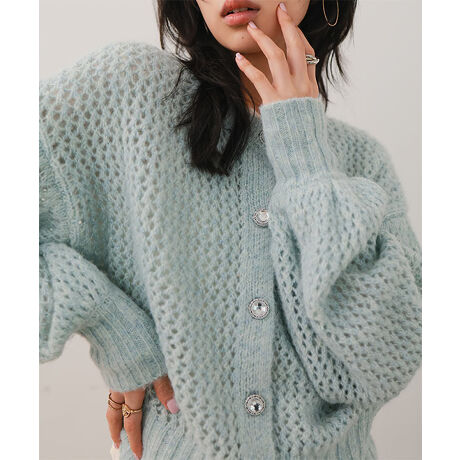 ふんわりと柔らかな雰囲気引き立てる透かし編みニットカーデ。