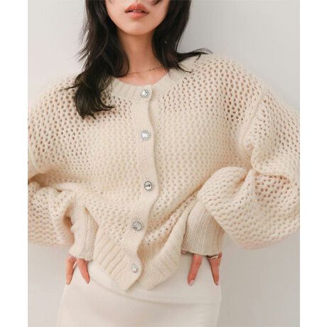 プルオーバーとしてもカーディガンとしても着回せ、ビジューボタンが綺羅びやかに秋冬コーデを彩ってくれる一着です。