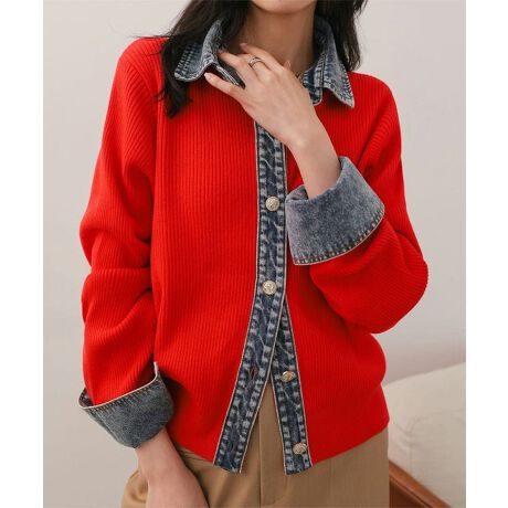 異素材の切り替えデザインが新鮮なリブニットカーデ。