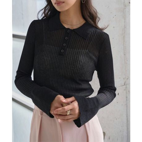 カジュアルな印象のポロをシアー素材で女性らしい繊細さを演出。