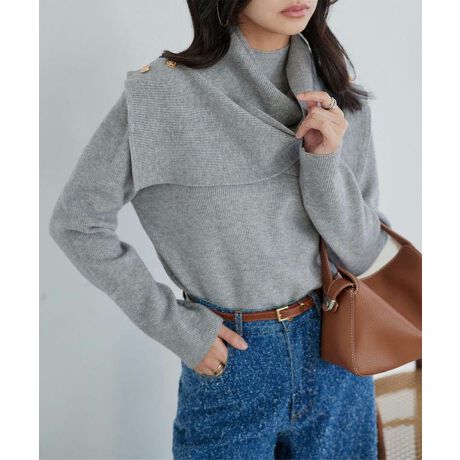 付属のストールは取り外しできるので、ニット、ストール単体でもお召いただけます。