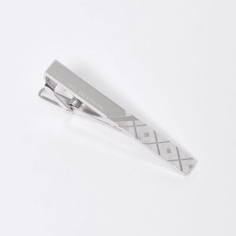 プレートの片側に繊細なカットでクレストブリッジチェックを施したシンプルでスタイリッシュなデザインのタイバーです。汎用性が高く、ギフトにもオススメの1品です。
