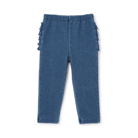 バックフリルが可愛らしいレギンスです。無地、花柄、デニム風など、豊富なバリエーションからお好みのデザインを楽しめます。ウエストはゴム仕様で、ゆったりとしたはき心地なのも魅力。内側にお名前を記入できるタグがついています。【おすすめの着用時期は春夏シーズン】