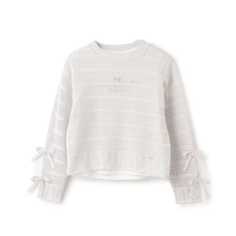 二ットは袖部分にリボンをあしらい、可愛らしいアクセントをプラス。