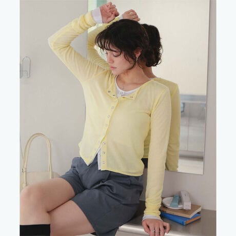・シアー感が今年らしいカーディガン。・重ね使いもおススメです。・シルバーボタンもポイントのデザインです。・柔らかい生地で着心地抜群。[型番:AHJR4912]