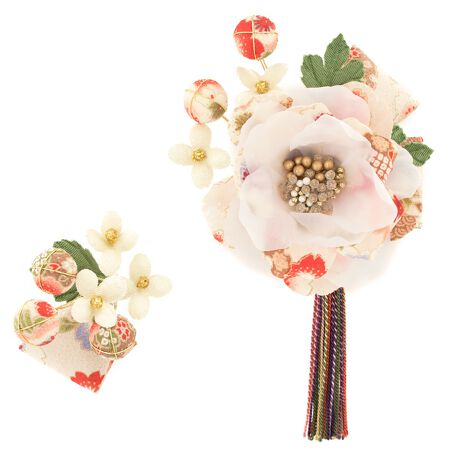 和柄の縮緬地を贅沢に使用した、高級感溢れる髪飾りです。