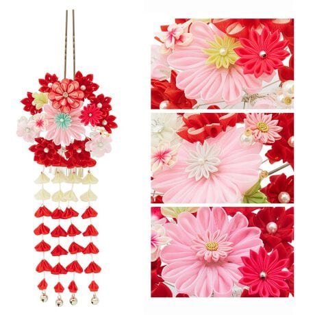 ■ぶら飾りやビラ飾りが豪華なつまみ細工の簪■