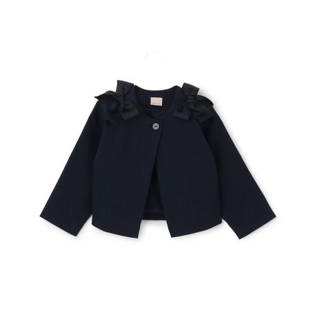 肩の大きなリボンデザインが目を引くショートジャケットです。