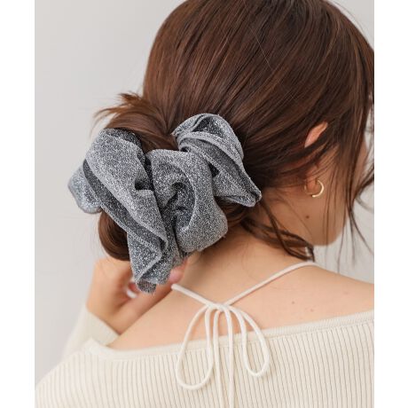 さりげなくきらめくラメ素材がポイントの、存在感たっぷりなビッグシュシュ。ボリュームのあるシルエットで、シンプルなまとめ髪も一気に華やかな印象に仕上げてくれます。派手すぎないラメ感なので、大人っぽく取り入れやすく、コーディネートのアクセントとして活躍。シーズンレスで使いやすい、デイリーに取り入れたいヘアアクセサリーです。