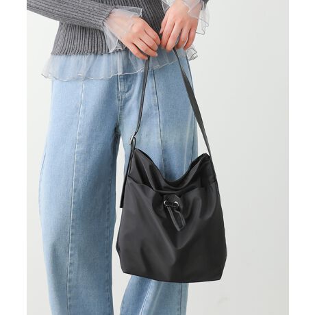 表地にはナイロンと合成皮革を使用し、軽やかさと上品さを両立。裏地はポリエステル100%で、見た目以上に扱いやすい仕上がりです。デイリーに使いやすく、シーズンを問わず活躍します。