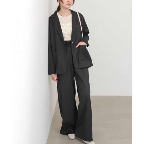 【セットアップ】ゆるシルエットテーラードジャケット+ウエストゴムストレートシルエットパンツ