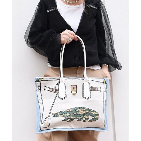 トートバッグ/ジャガードバッグ/だまし絵バッグ/ワニモチーフ/アニマルバッグ/A4トート/通勤バッグ/通学バッグ/デイリーバッグ/レディーストート/個性派バッグ/大人カジュアル/遊び心バッグ/おしゃれトート/肩掛けバッグ/サブバッグ/ブラウントート/ジャガードトート/プリント風/ユニークバッグ