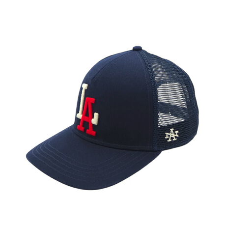 前面パネルにLos Angeles Angels(ロサンゼルス・エンゼルス)のロゴが落とし込まれたカーブバイザーのメッシュキャップです。