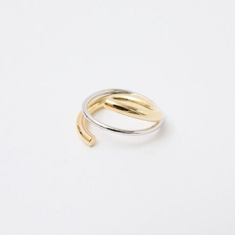 シルバーとゴールドのバイカラーが目を引くラインデザインリング。単品でもしっかり主役になり、立体的なデザインが指を華奢に見せてくれます。重ね付けや他のアクセサリーとなじみやすく、日常使いしやすいアイテムです。バイカラーなので、合わせる他のアイテムや時計など選ばないのが嬉しいポイント