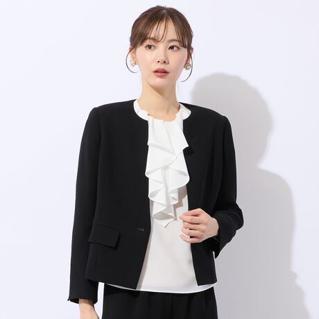 トリアセテート混による艶感が気品ある雰囲気を演出してくれるシンプルで美しい素材。深い黒は美しく、ブラックフォーマルにも対応可。