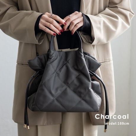 キルティング加工を施した丈夫な高密度ナイロンを使用し、上品で優しい雰囲気のバッグに仕上げました。