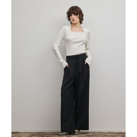 [型番:0126111212]【Japan fabric】ダブルクロスのワイドパンツ。スタイリッシュになるように拘ったシルエットにウエストの同素材のベルトがポイント。※こちらのモデル着用画像はサンプル品を撮影しております。実際の商品と仕様、加工、サイズが若干異なる場合がございます。予めご了承くださいませ。