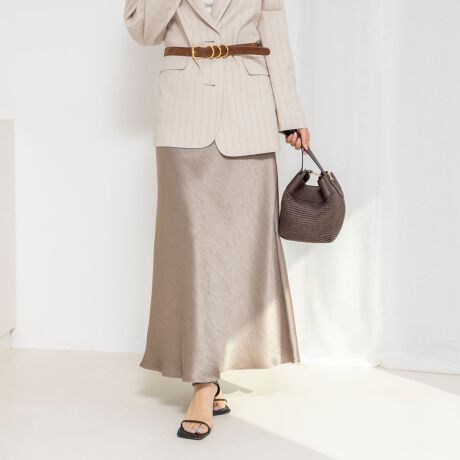 ・生地をバイヤス取りしているので、程よい落ち感があり綺麗なシルエットに