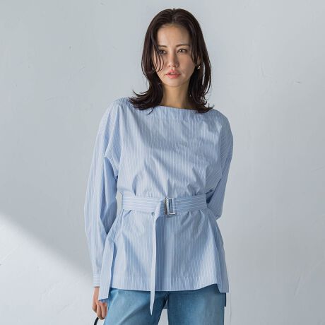 ベルトを付けても外しても着用できる、着こなしの幅が広がる2WAYデザインのブラウス。