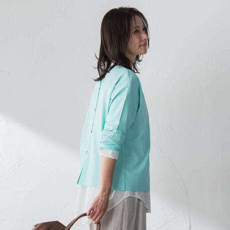 一枚着としてはもちろん、ジャケットやカーディガンのインナーとしても使いやすく、幅広いスタイリングに対応します。