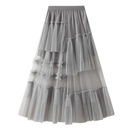-大胆フリルと透け感が華やかなチュールスカート
