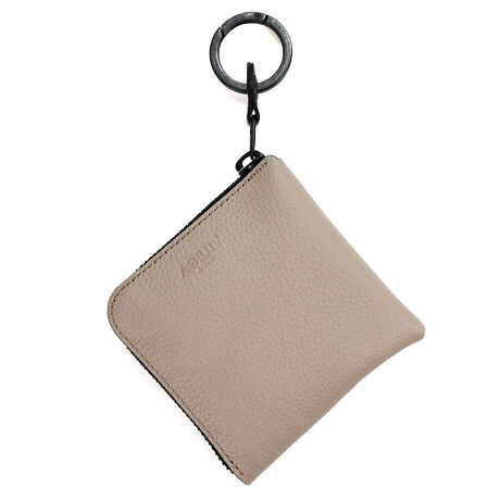 コンパクトなのに大きく開くL字ファスナーショートウォレットです。L字ファスナー+マチで、本体がガバっとトレー状に大きく開きます。縫製を極力減らし、構造をシンプルにすることで仕切りの可動域を広げており、入れるものを変えても柔軟に対応することができます。中央の大きく開くトレー状のスペースには小銭がじゃらっと入ります。仕切りと本体の高さの差を1円玉以下にすることで、仕切りの上が開いたままでも小銭がほかのスペースに移動してしまうのを抑えています。小銭入れ仕切りの左側のスペースにはカードが5〜8枚程度収納可能(縦向き/横向き可)、右側のスペースには2つ折りにした紙幣が入ります。ファスナーヘッドについている着脱可能なリングカラビナには鍵などをつけておくことができます。バッグやストラップなどにさげて使うにも便利です。