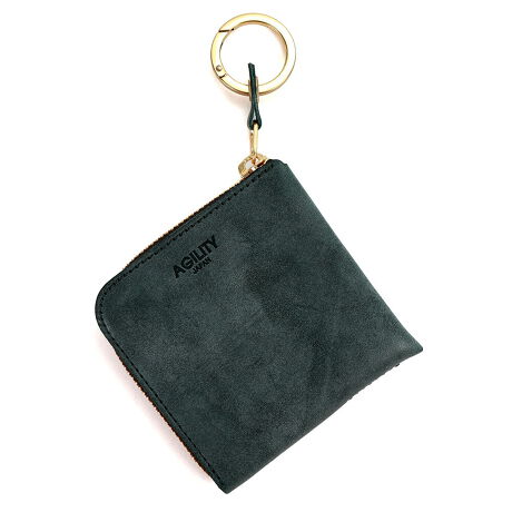 コンパクトなのに大きく開くL字ファスナーショートウォレットです。L字ファスナー+マチで、本体がガバっとトレー状に大きく開きます。縫製を極力減らし、構造をシンプルにすることで仕切りの可動域を広げており、入れるものを変えても柔軟に対応することができます。中央の大きく開くトレー状のスペースには小銭がじゃらっと入ります。仕切りと本体の高さの差を1円玉以下にすることで、仕切りの上が開いたままでも小銭がほかのスペースに移動してしまうのを抑えています。小銭入れ仕切りの左側のスペースにはカードが5〜8枚程度収納可能(縦向き/横向き可)、右側のスペースには2つ折りにした紙幣が入ります。ファスナーヘッドについている着脱可能なリングカラビナには鍵などをつけておくことができます。バッグやストラップなどにさげて使うにも便利です。