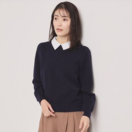 スタイリングにこなれ感をプラスしてくれるレイヤード風のシャツ衿がアクセント