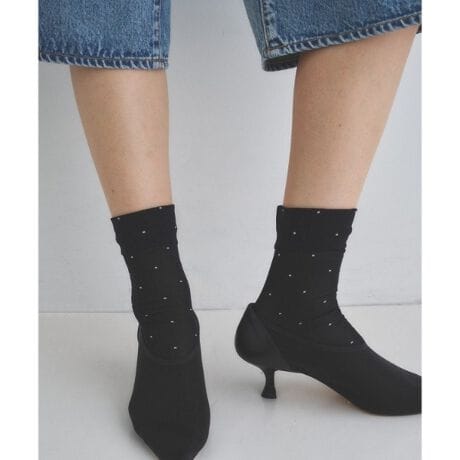透明感のあるシアー素材に、繊細なドット柄を施した一足。