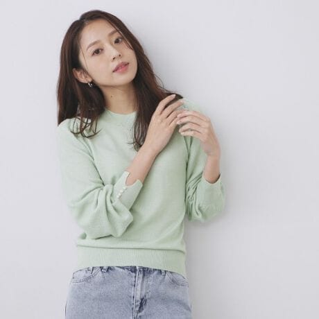 ・袖口にはパール調の付属を配置し、さりげないアクセントを加えています。