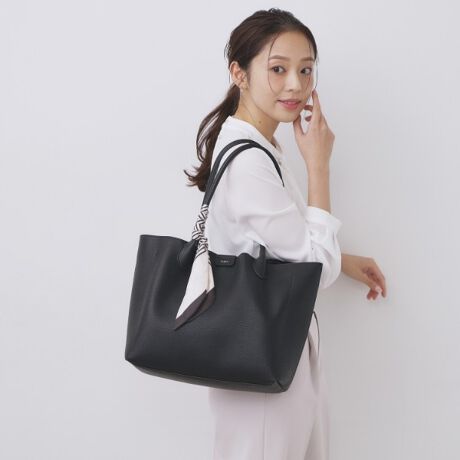 ・取り外し可能なやわらかい風合いのスカーフ付きで、ベーシックなバッグにアクセントとトレンド感をプラス。