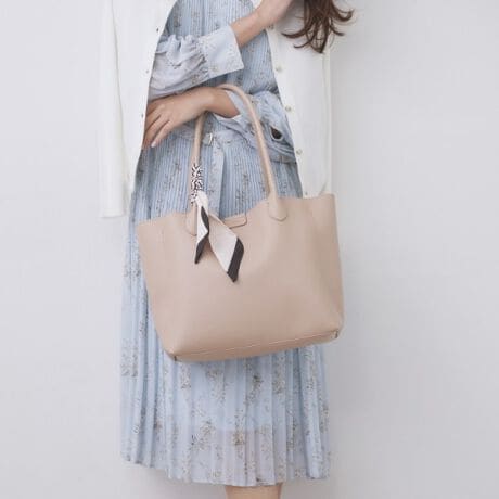 ・取り外し可能なやわらかい風合いのスカーフ付きで、ベーシックなバッグにアクセントとトレンド感をプラス。