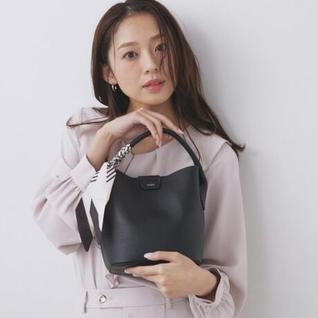 ・取り外し可能なやわらかい風合いのスカーフ付きで、ベーシックなバッグにアクセントとトレンド感をプラス。