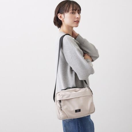 軽量で耐久性のあるポリエステル素材を使用したショルダーバッグ。