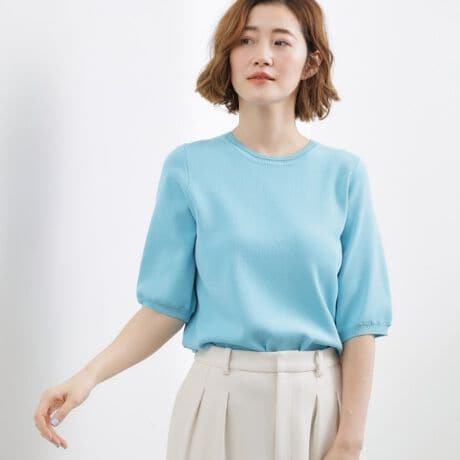 袖口にさりげなくボリュームを持たせ、二の腕を自然にカバーする安心感のある袖丈に仕上げています。