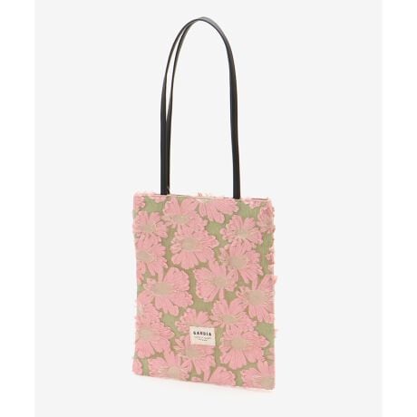 立体的で柔らかい色合いのフラワーデザインがフェミニンなトートバッグ。