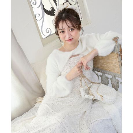 ニットボレロはふわふわなシャギー素材で、サッと羽織るだけでコーデにメリハリを加えてくれます。