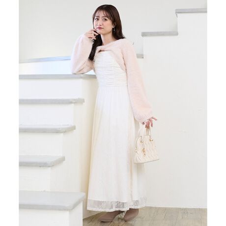 ニットボレロはふわふわなシャギー素材で、サッと羽織るだけでコーデにメリハリを加えてくれます。