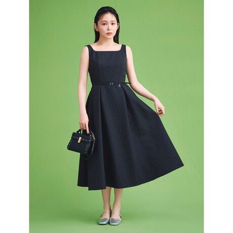 デコルテラインを美しく見せるスクエアネックと華奢さを感じる袖繰りのラインに拘り、上品なフィットアンドフレアーシルエットに仕上げたワンピース。