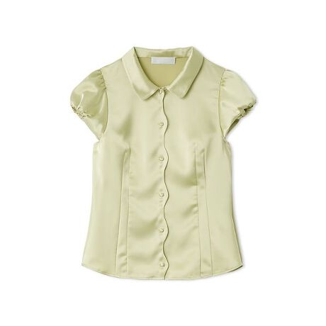 コンパクトなバルーンスリーブがポイントのサテンブラウス。フロントのスカラップがモードな印象に。