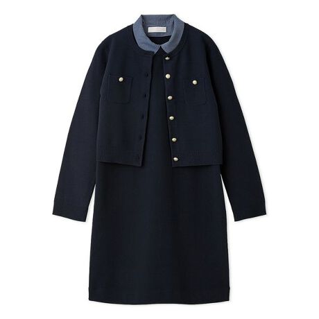 カーディガン、ワンピースともに凹凸感のある鹿の子編みにすることで、こなれた印象に仕上げました。セットでの着用はもちろん、それぞれ単品使いでもおすすめです。